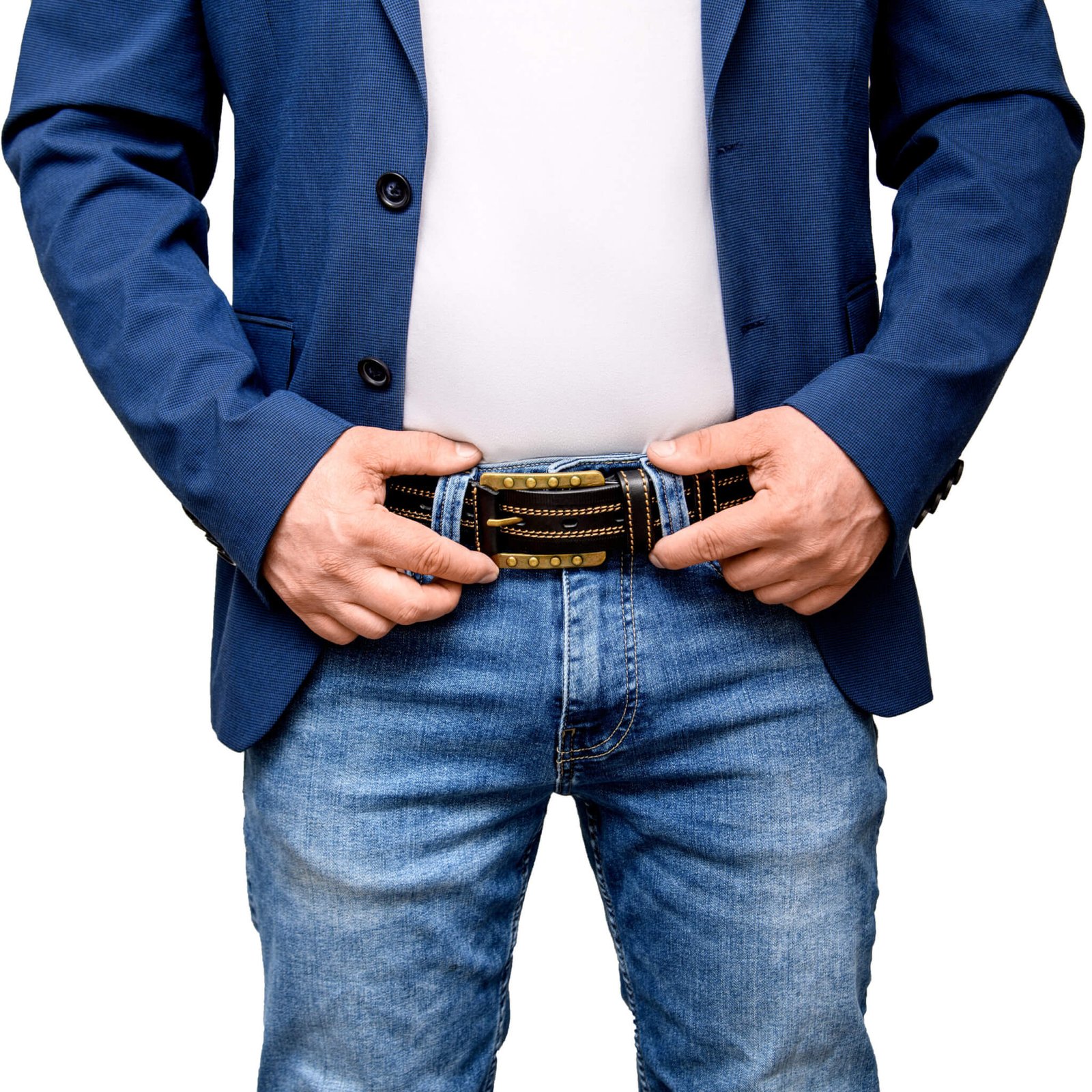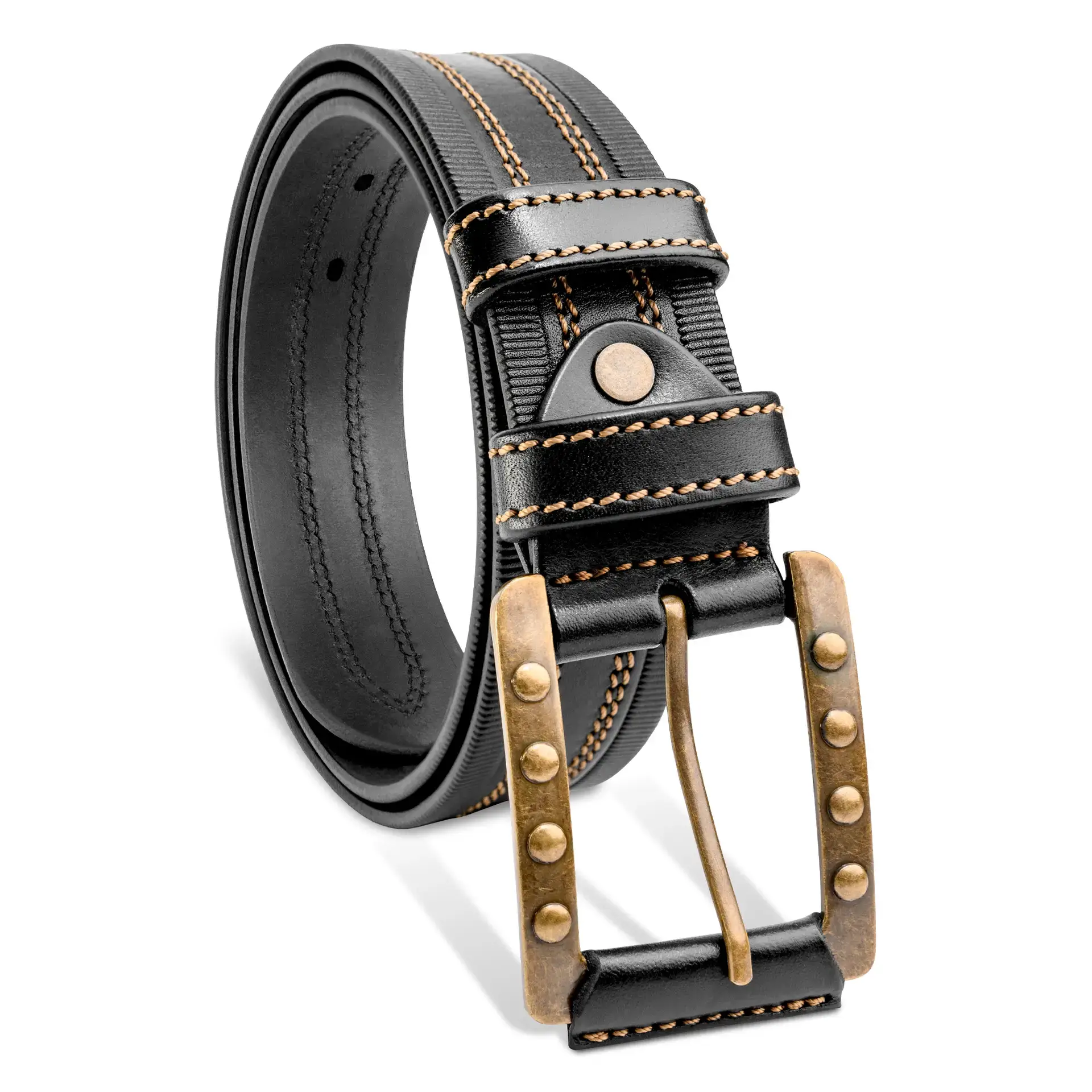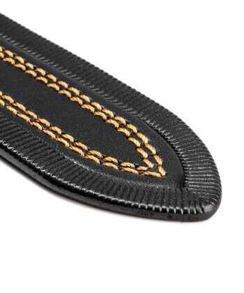 The Brass Knight is a solid full grain leather belt crafted for the modern man with a taste for old-world grit and style. Made from premium black leather, it features gold stitching, a brass buckle, and elegant edge detailing. With a sturdy 3.8-4.5 mm thickness, it’s built to last and look sharp doing it. A black belt with gold buckle for men who appreciate strength, polish, and subtle medieval flair.